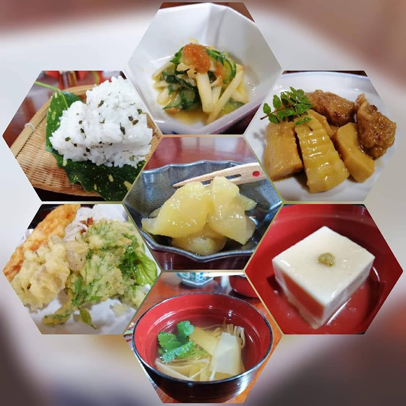 高福寺の精進料理は、旬の野菜・豆腐・海藻・穀物など、自然の恵みを中心に構成されています。